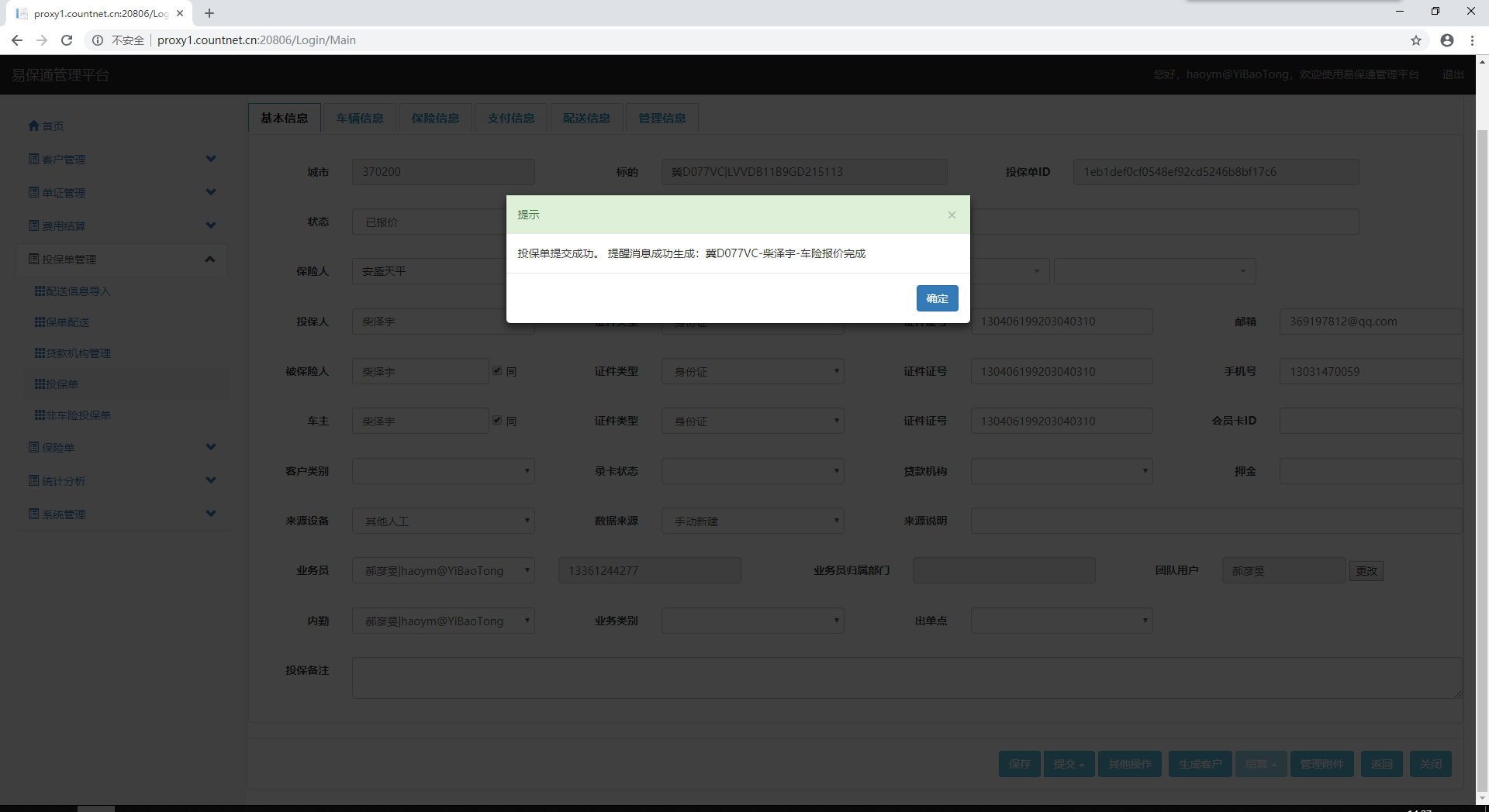 【速成高级版】投保单编辑页面,提交到已报价从保险公司下载后,确定给业务员发消息后,对话框被投保单提交到已报价成功的消息给冲掉,导致页面无法继续下去