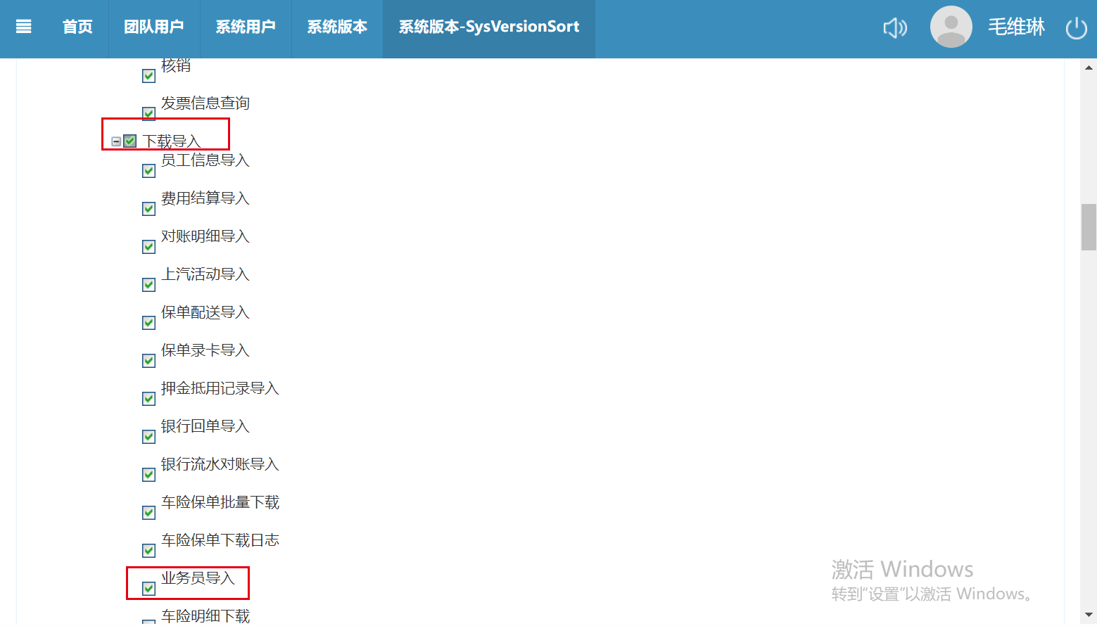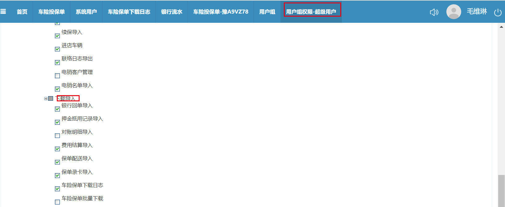 郑州服务版本为易保通速成高级版,此版本下编辑权限中下载导入菜单中有勾选业务员导入选项,但是在郑州服务器-用户组中查询所有权限在下载导入菜单下均无业务员导入此选项,需在用户组中显示业务员导入此选项,并让管理员权限可以操作业务员导入功能。