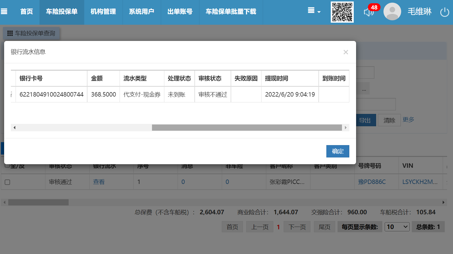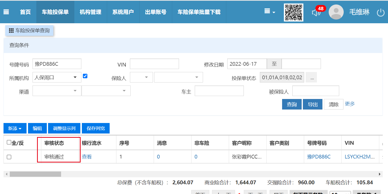 业务员老师在微信端正常下载保单后操作权益审核取消,审核状态为审核通过,但无法生成新流水,且点击车牌号进入保单后显示空白问题车辆:豫PD886C、豫PW0779