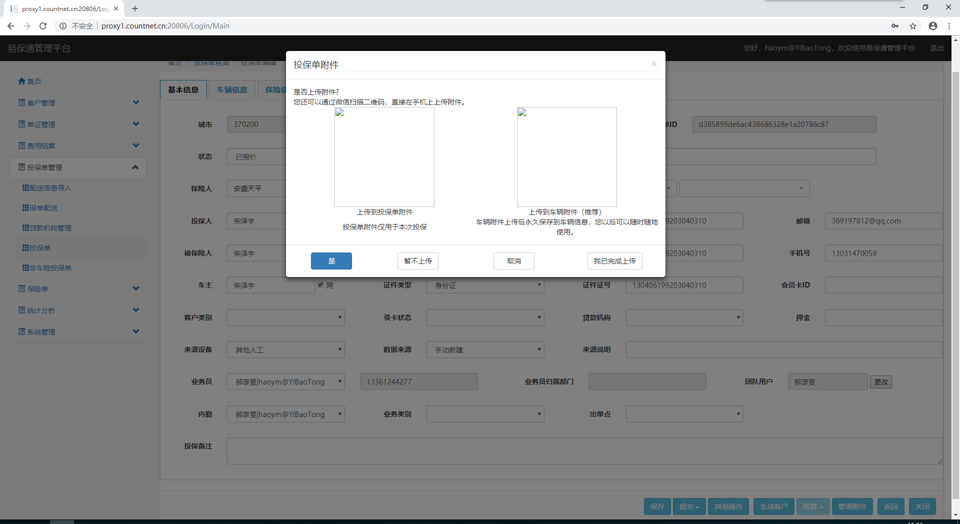 【速成高级版】投保单编辑页面,提交到确认出单待提核提示是否上传附件,二维码没有显示