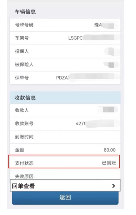 在云鹰保公众号业务中心-投保单查询,查询条件填写完成查询后,在订单支付明细中添加一行回单管理,支付状态为已到账,财务老师上传的回执单后可在此点击查看回单,并能保存到手机图库或者直接在此页面直接转发给客户,此功能只在微信公众号上线,增加客户对公众号的依赖性