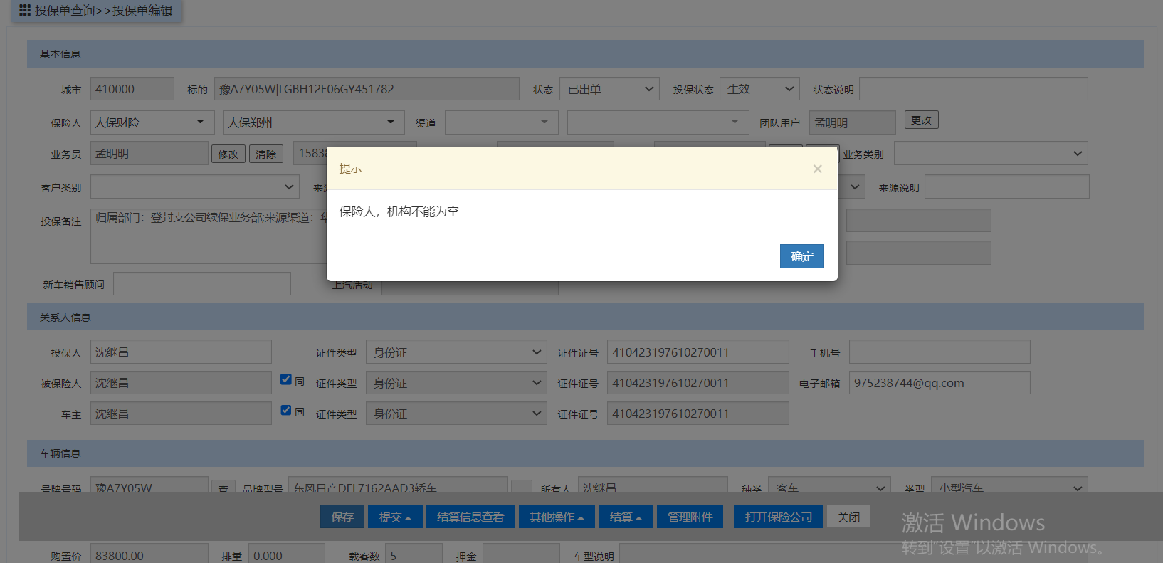 客户询问车险投保单中的“上传附件”显示未上传,尝试进行补下电子保单操作未成功,提示保险人、机构不能为空,但是保单内保险人和机构都是有内容的