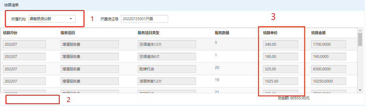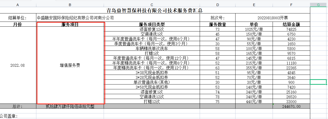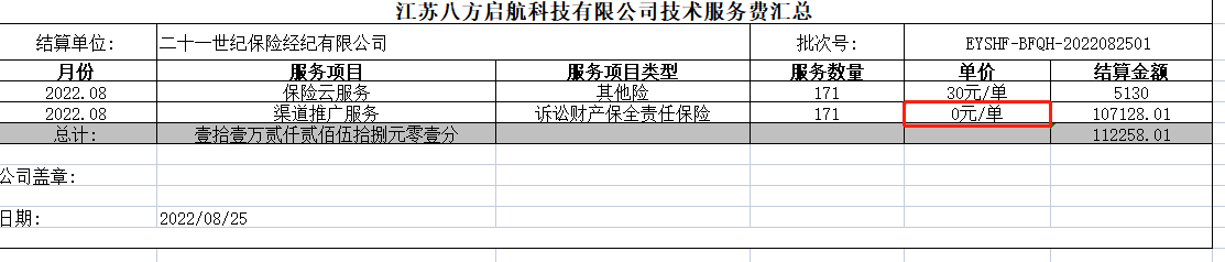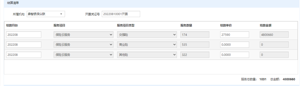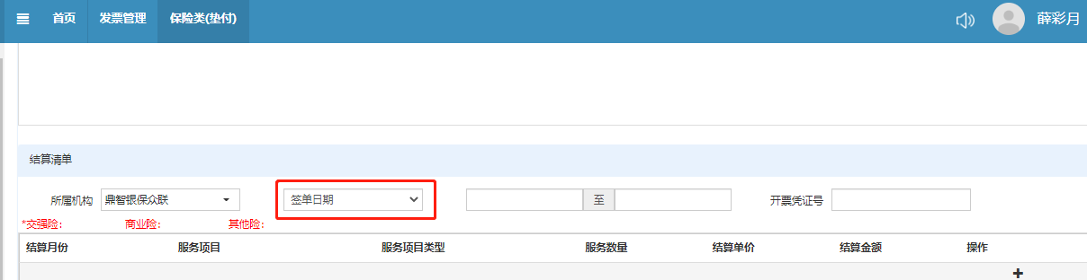 三、附件优化3,保险类(垫付)发票申请详情结算清单中: