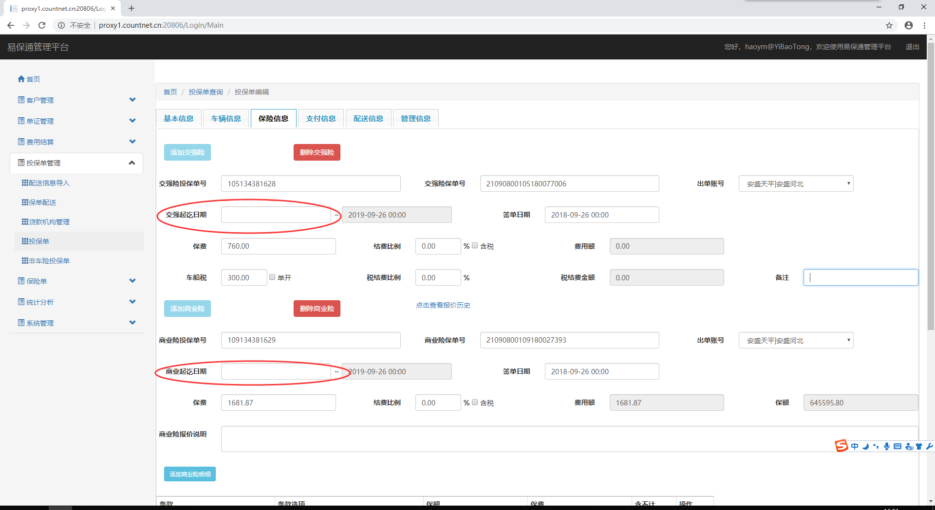 【速成高级版】投保单编辑页面,提交到已出单状态,商业交强险的起讫日期都变为空