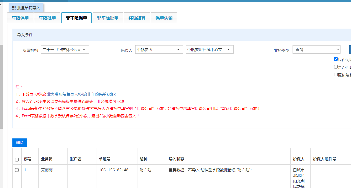 二十一世纪分公司老师填写非车险保单导入模板中的险种填写为“财产险”,系统显示字段数据错误,但险种的提示内有“财产险”,后说明财产险分为了“家财险”和“企财险”,为避免二十一世纪老师导入时再出现此状况,需修改更新模板