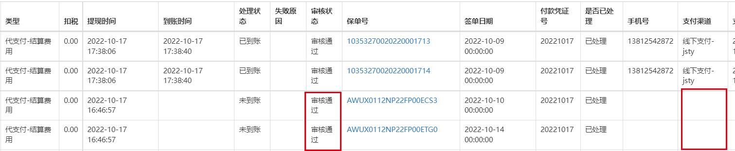 流水未设置支付渠道,点击审核能使流水审核通过,但处理状态无法改变,显示原因为“只有审核通过的且渠道为【线下支付】的流水,才能点击已到账或是转账失败!”,但银行流水不提交到审核不通过或者转账失败,无法选择支付渠道,所以,若生成流水后未有支付渠道,则应在点击审核通过时,弹出例如“操作失败,请选择支付渠道后再进行审核”等类似话语,不能直接审核通过。