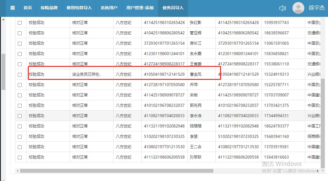 见附件,为什么导入时用的登录名是手机号,显示已存在(此机构下没有该业务员),手动新添登录名也是用的手机号就会成功,因所有机构新添用户不允许登录名重复,但是也有导入时提示已存在,手动新添用同样的登录名会不允许添加,这个是符合新添用户的逻辑,所以批量导入的逻辑是什么?