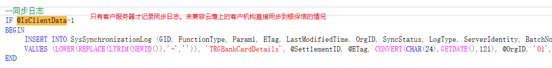 触发器、存储过程记录同步日志时需兼容直接同步到银保信的情况