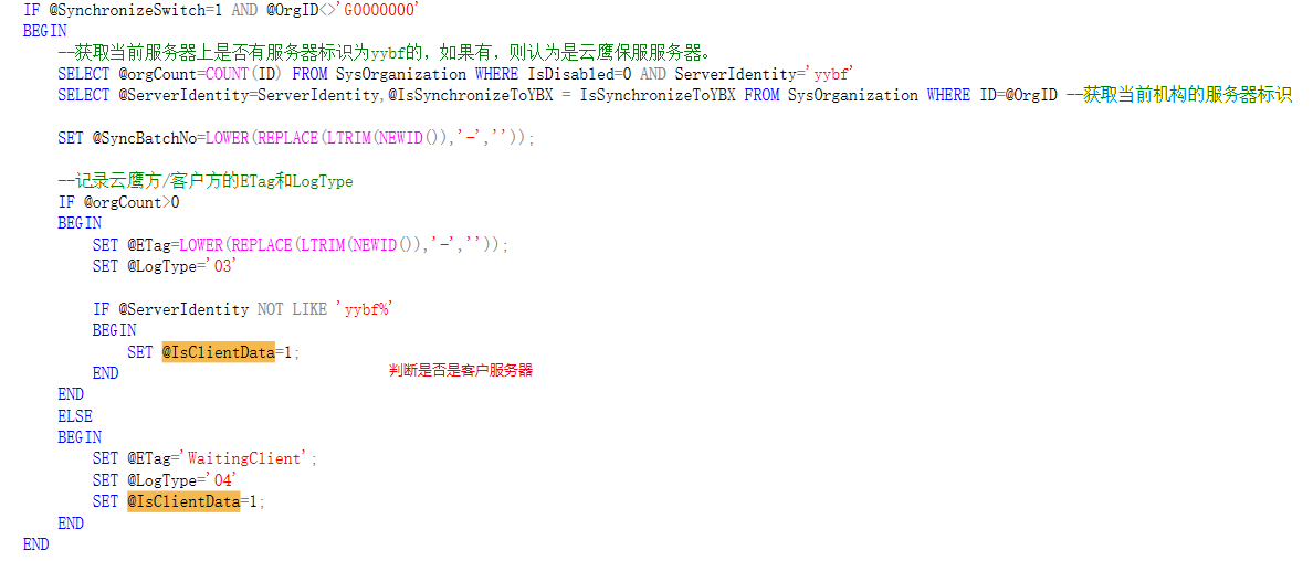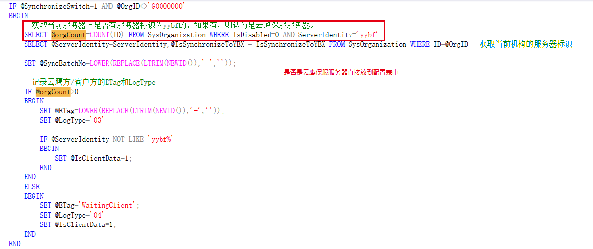 2.触发器、存储过程当前用到的动态开关(服务器是否开启同步、是否银保信服务器、是否云鹰服务器)需统一存到配置表中(SysServerConfig)