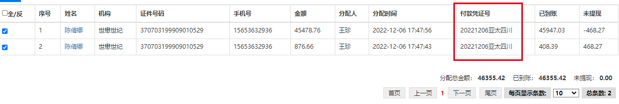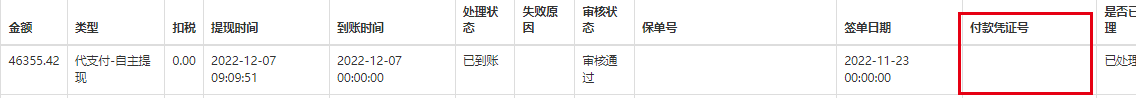 自主提现的结算单有付款凭证号(附件1)银行流水生成时没有(附件2),需要生成一致的付款凭证号以便查询