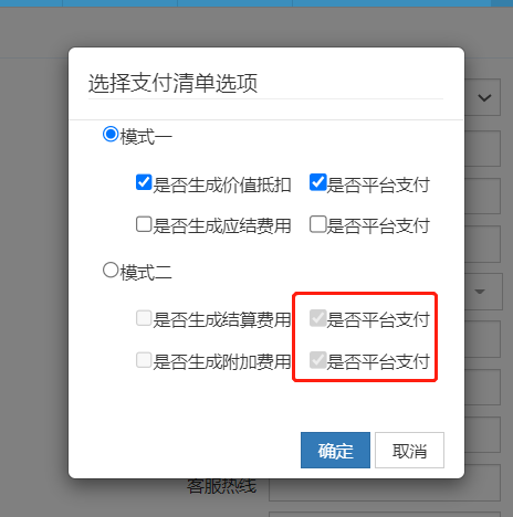 机构管理中支付清单选项,没有选择模式二但勾选了模式二的是否平台支付,需修改