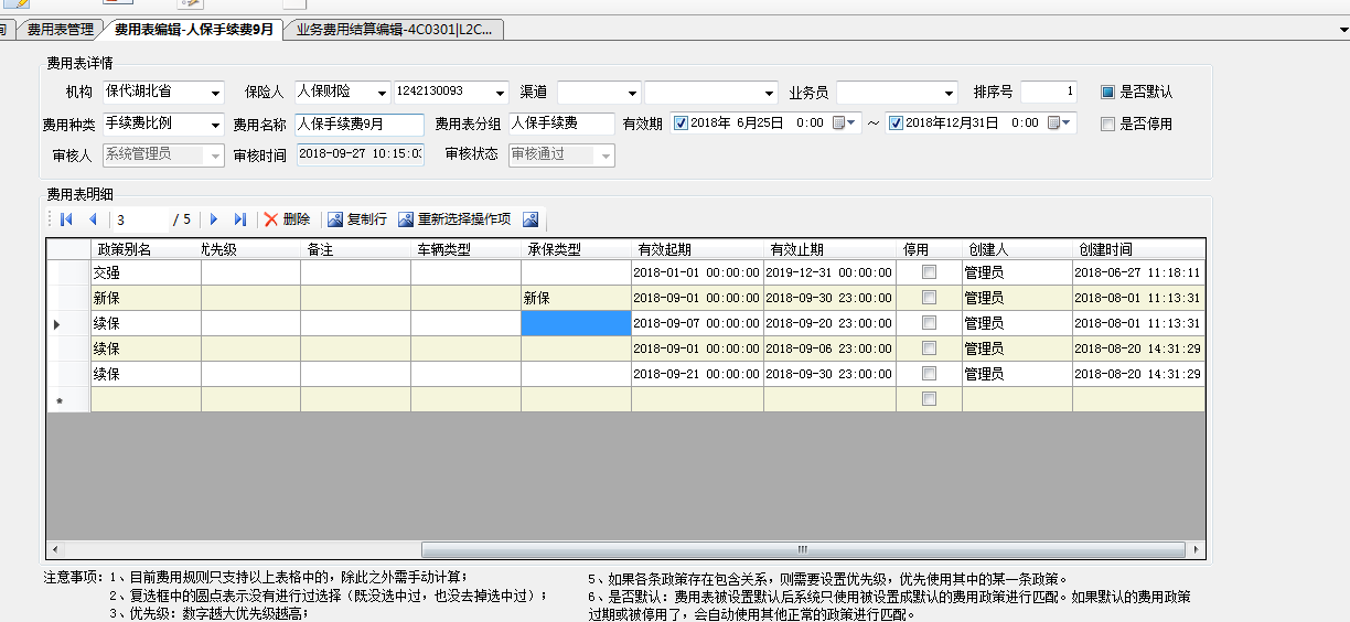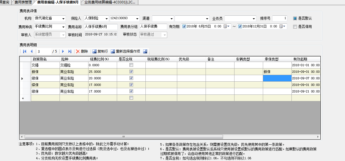 9)除业务员、渠道外的所有要求都满足并且默认的费用表
