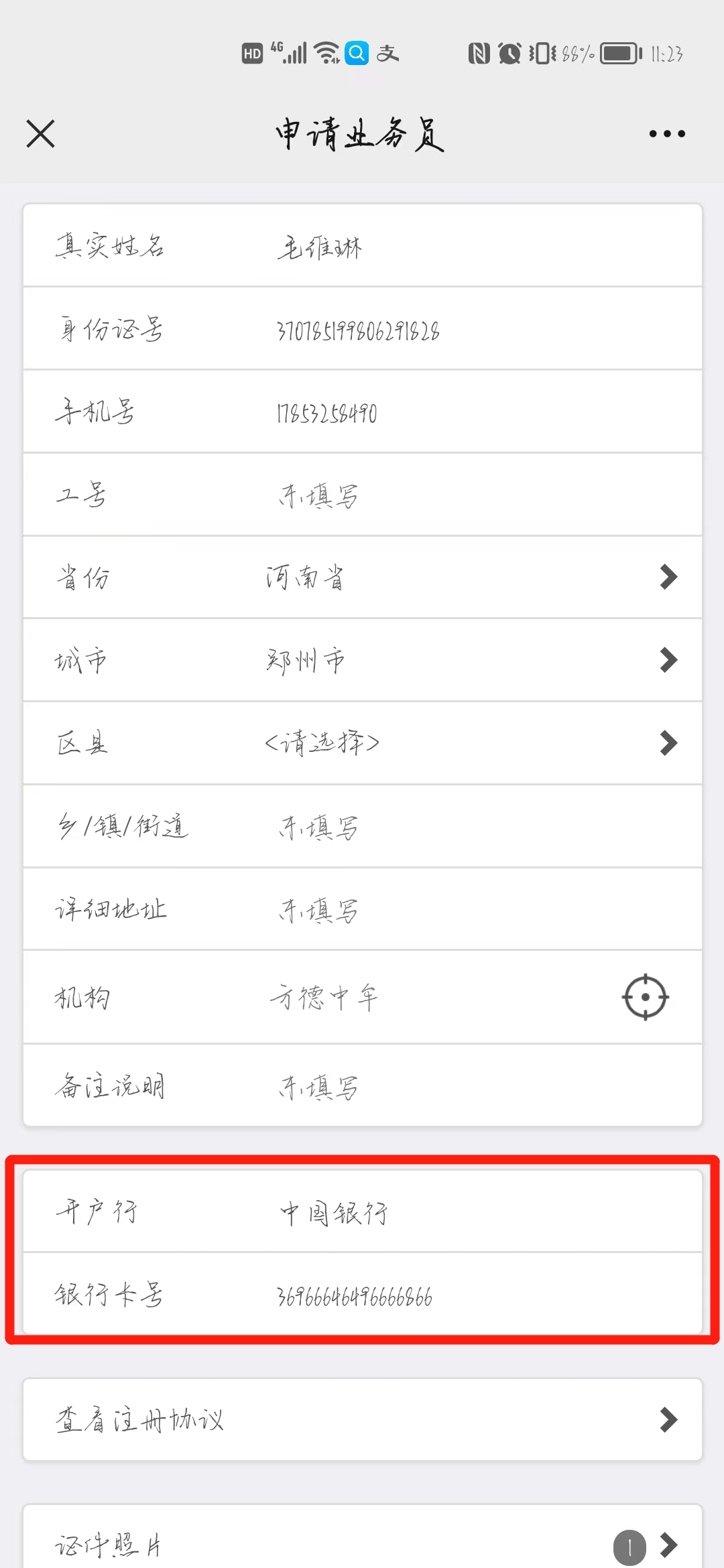 因前期绑定云鹰保公众号时,未强制填写银行卡号及开户行,所以导致部分坐席老师的银行卡处空白,需可以让坐席老师在云鹰保公众号中我的-个人中心-加入我们中若前期未填写的可以在此添加,也可以在此修改开户行及银行卡号,添加或修改后同步到BS系统用户管理-银行卡号中