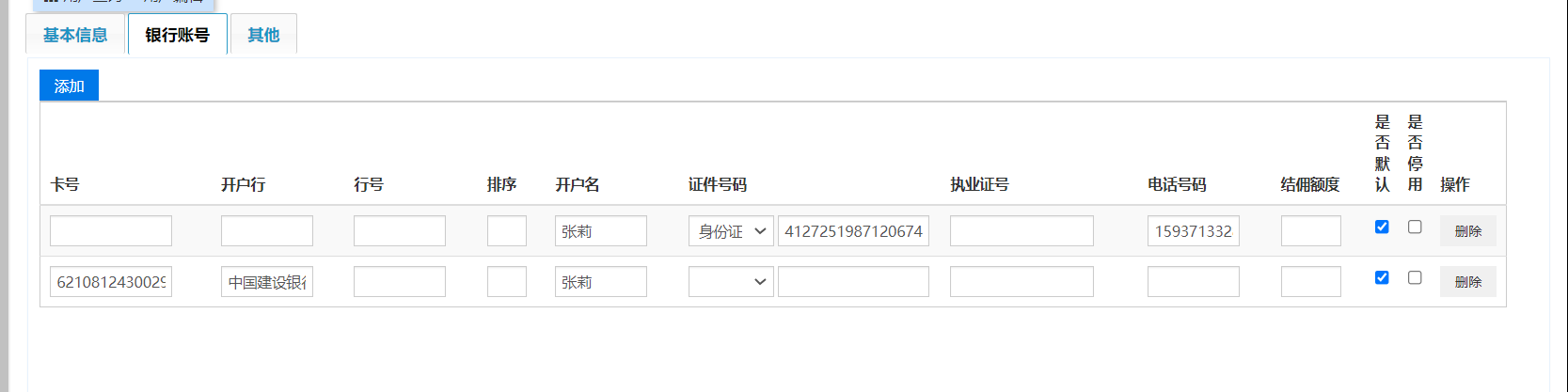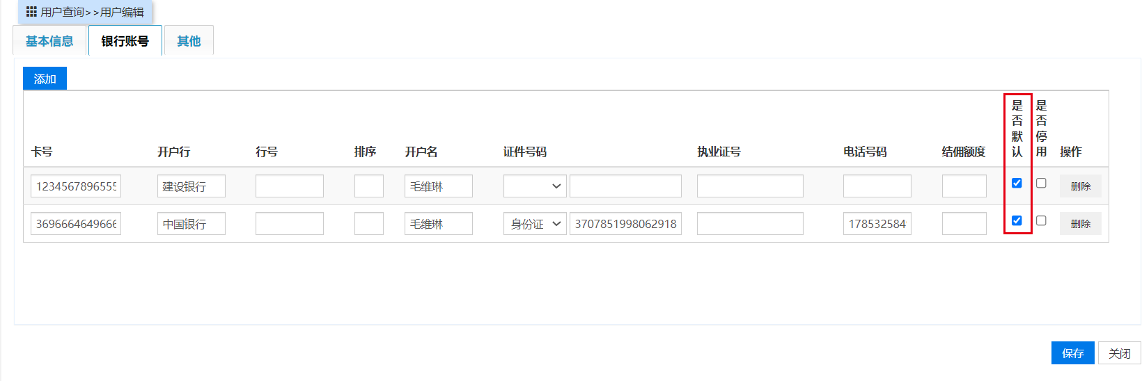 问题一:添加银行卡账号,原空白账号没有自动删除,新增的银行卡号后面没有更新姓名、身份证号,默认卡号选择变成了两个问题二:修改银行卡号,修改的银行卡号与原卡号同时勾选为默认卡号,需修改为以最新添加的银行卡号为默认卡号,原卡号保存记录但不再成为默认卡号相关问题号错误 #6105