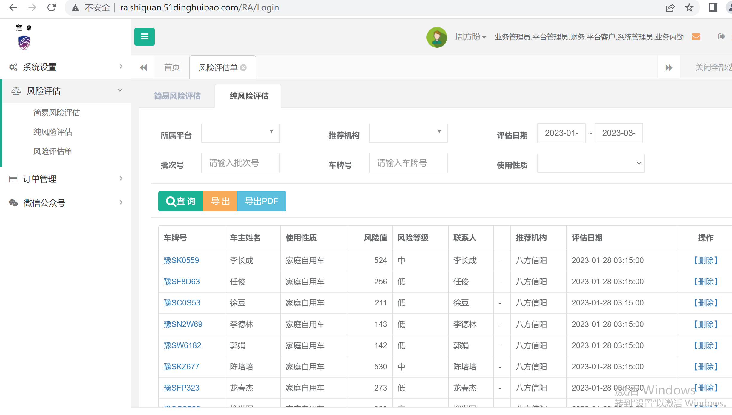 十全车服平台的风险评估系统登录后能查看其他机构的数据。未做到平台的概念。