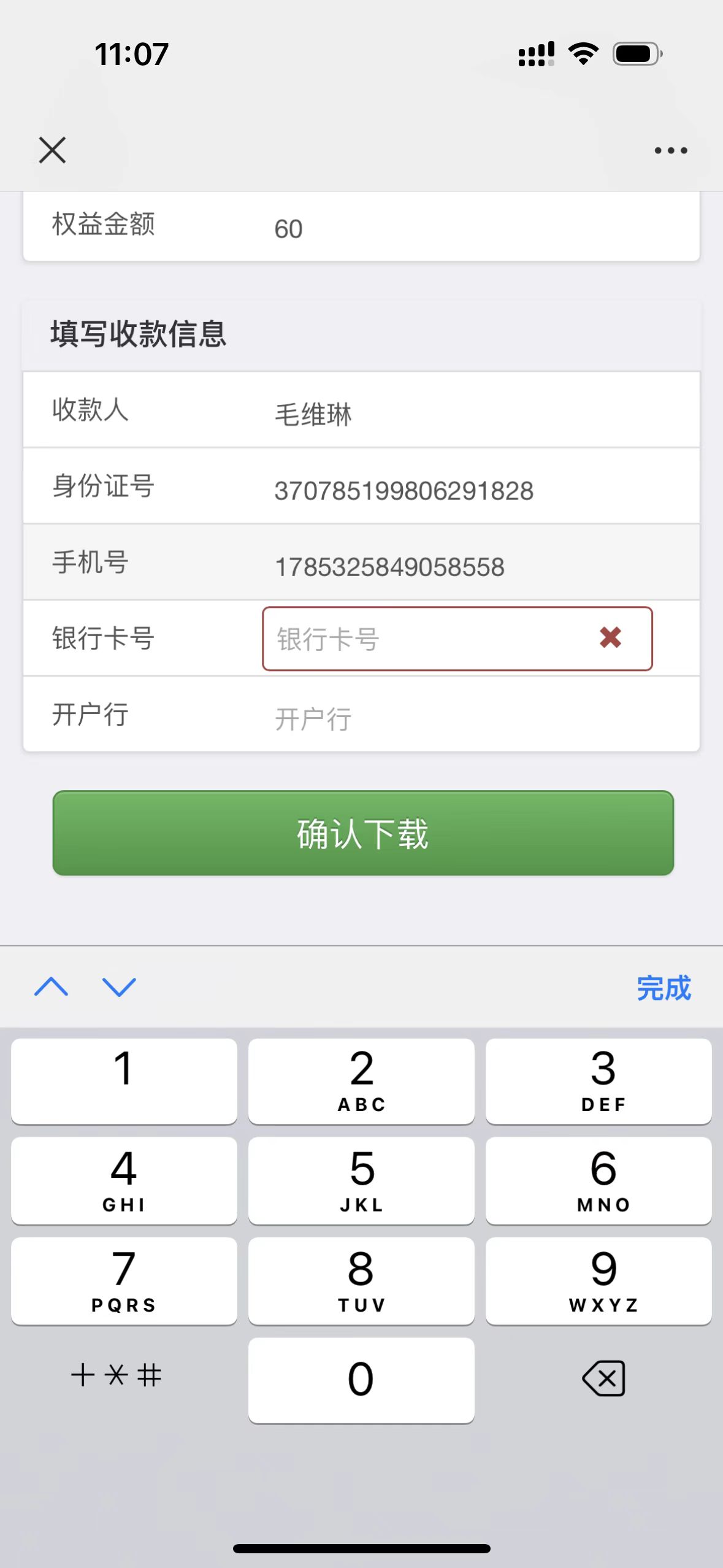 且在微信端下载保单,填写兑换信息时,未对手机号位数做限制,可能会带来问题,也需对手机号码进行11位限制