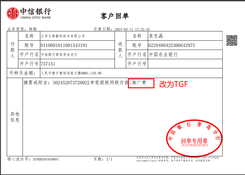 "江苏橙柿云"和"江苏众之付"下面的所有机构的打款摘要修改为TGF,客户收到的信息备注修改为TGF.