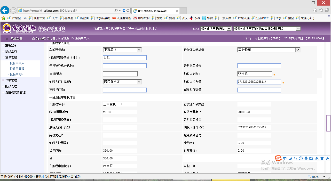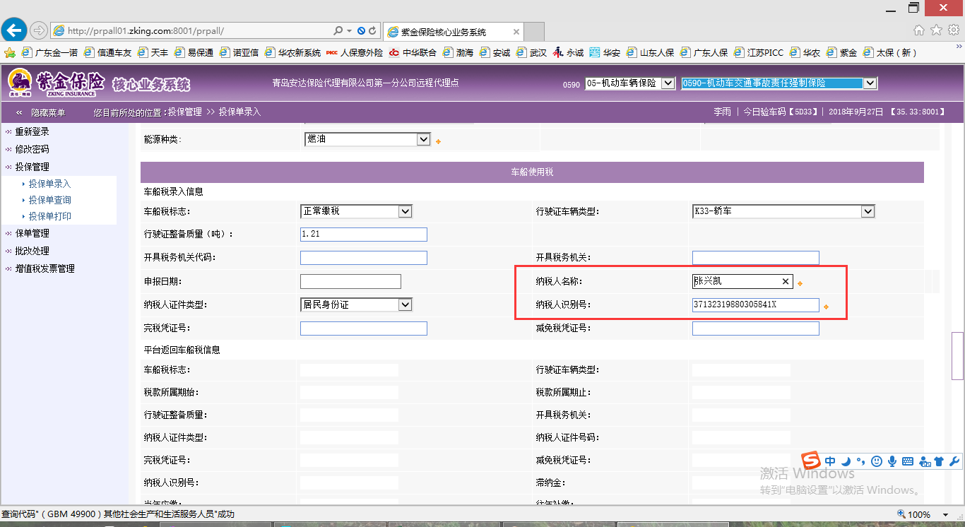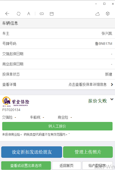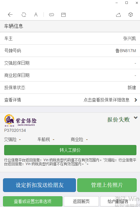 所有车在紫金系统内报价时,能够正常报出价格,但是在安达保系统内报价时系统会提示‘纳税类型代码值不再有效范围内’导致报价失败。