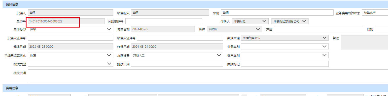 【核心系统】导入费用结算保单号和生成流水保单号不一致