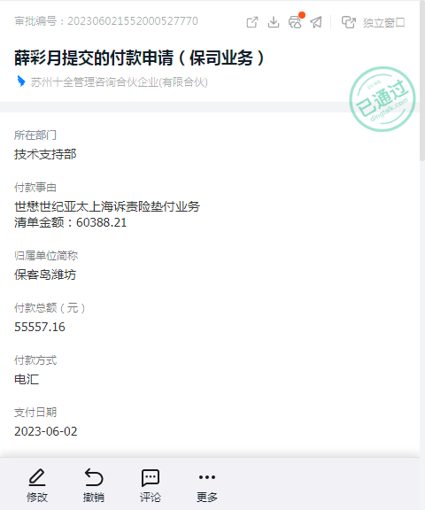 1.资金转账查询提交时自动同步到钉钉的审批流程(见图1、2),审批流程通过后,自动充值到相应机构余额;