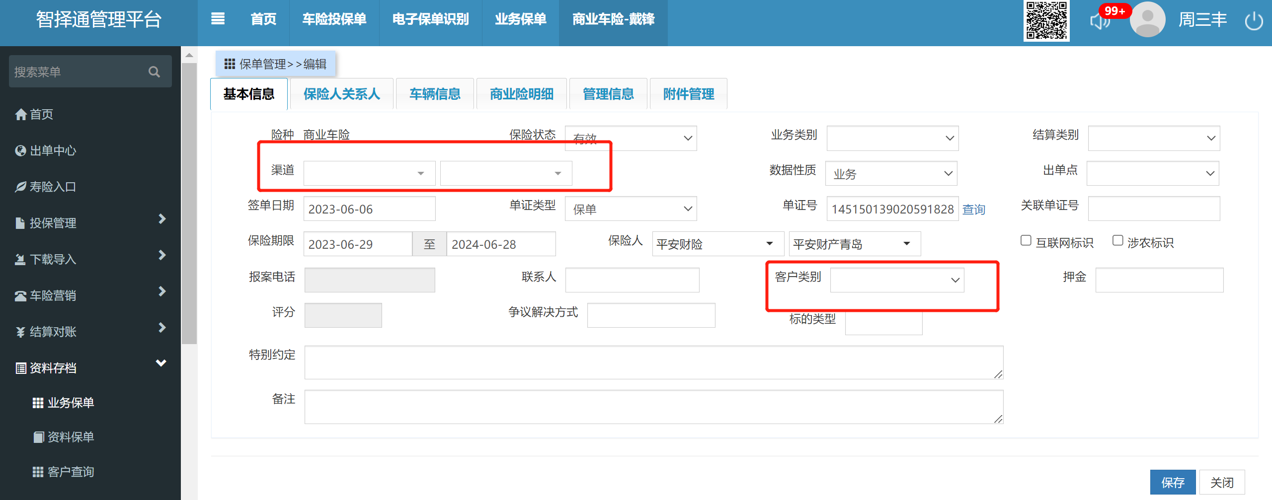 3、保单识别页面的“渠道"和"客户类别"在识别生成保单时未带入保单内,导致用户进入修改保单时