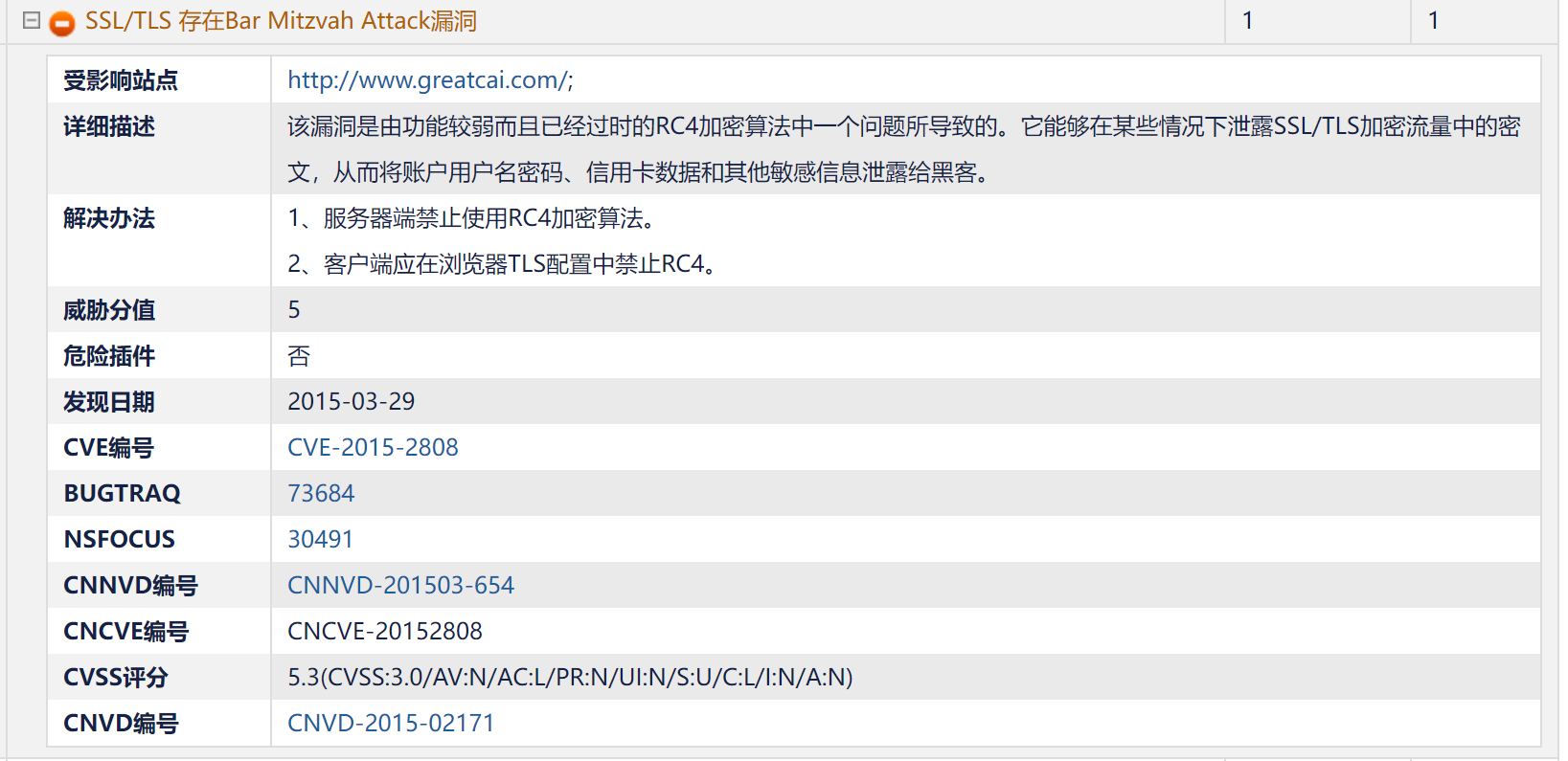 开发区网警核查-SSL/TLS 存在Bar Mitzvah Attack漏洞