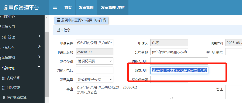 发票管理邮寄地址填写有长度限制,太长的邮寄地址在系统里会显示不全