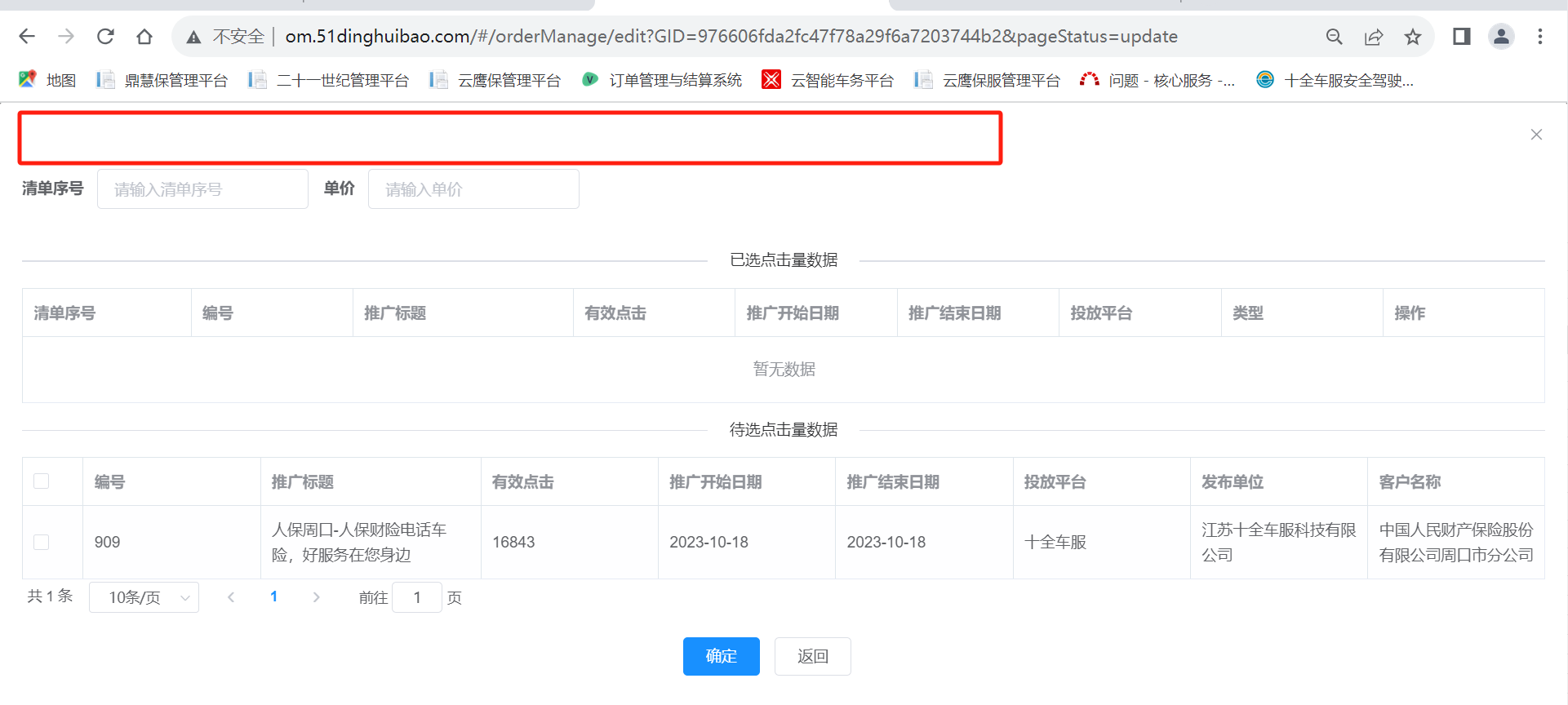 同时输入门户链接详细数据的下方将推广服务-推广服务的业务数据导入中挂钩云鹰生成的点击量明细(非必要,可以不勾选,存在只有门户链接没有版面大小的情况)