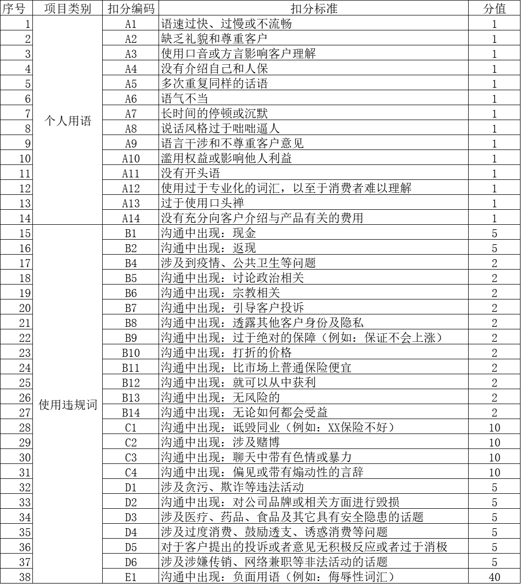 3.语音质检扣分项需对应评分,评分表如图2