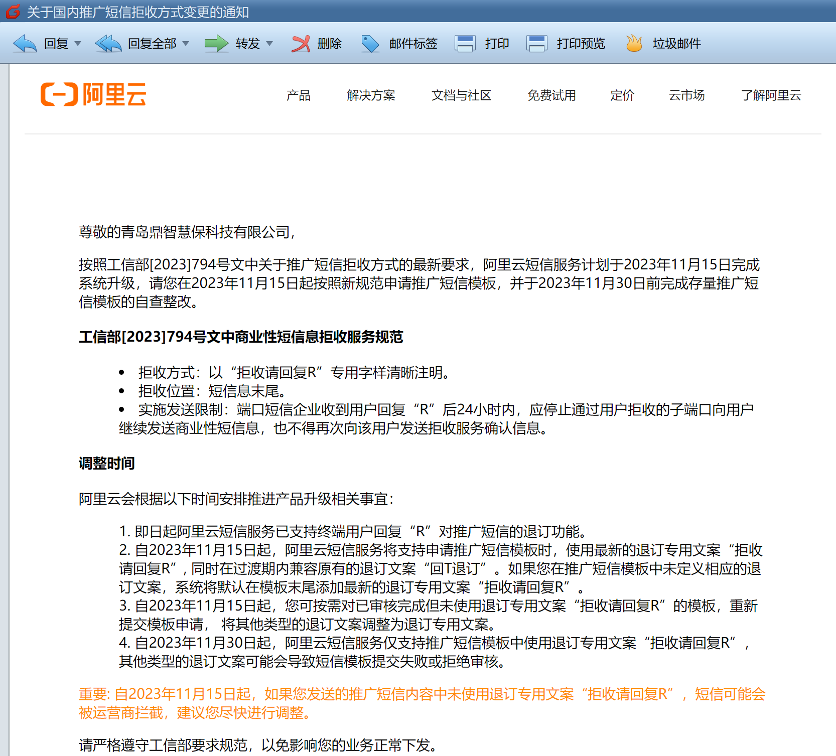 依据阿里云要求整改短信模板,并升级系统以兼容。详见附件。