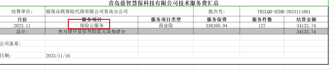 自动生成的结算单中【服务项目】改成【保险技术服务】,Excel和PDF中的都要一致,只针对于【鼎智银保众联】这个机构(见附件)