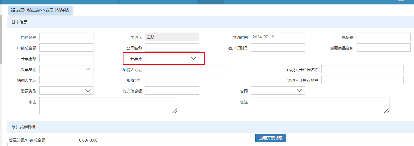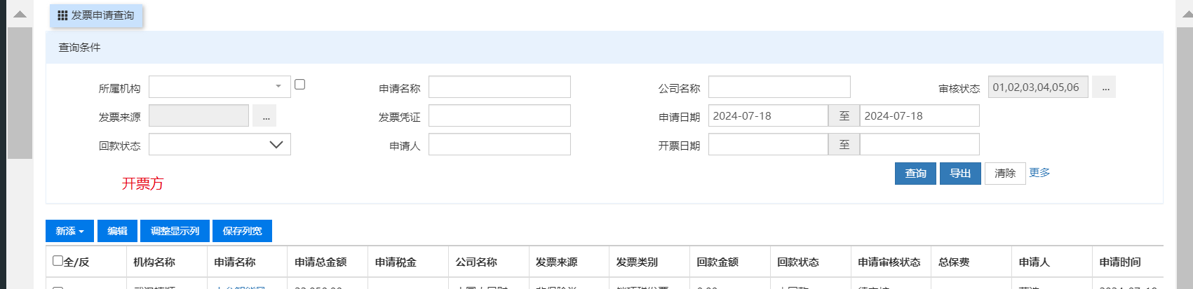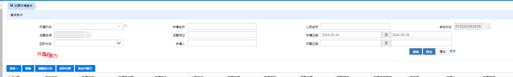 3.在发票申请查询页面-添加开票方,便于查询。如图四所示