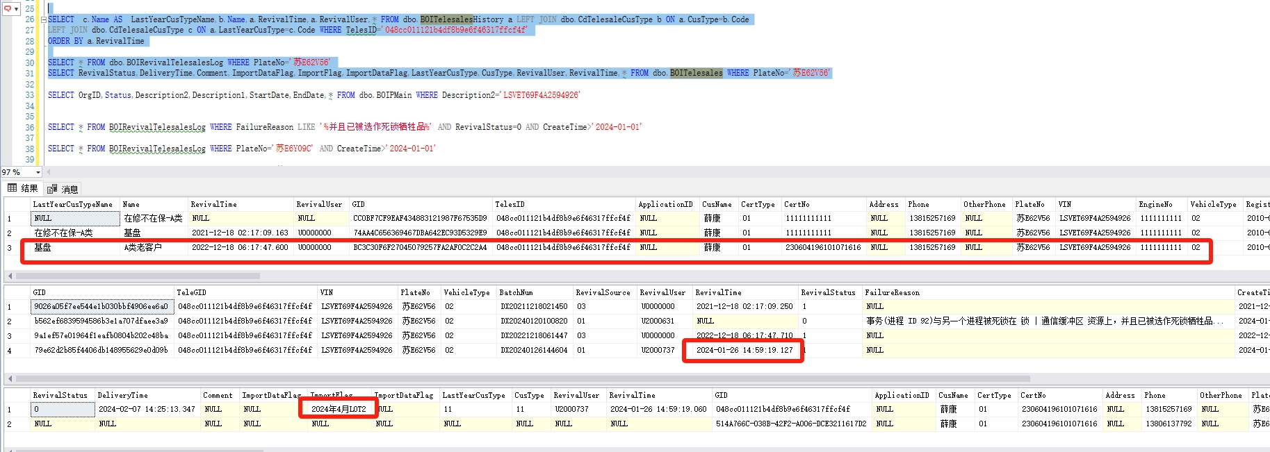 去年没成交,但今年复新的时候电销名单里已经成了A类老客户。问题名单:苏E6HV75、苏E62V56,目前已经发现6个