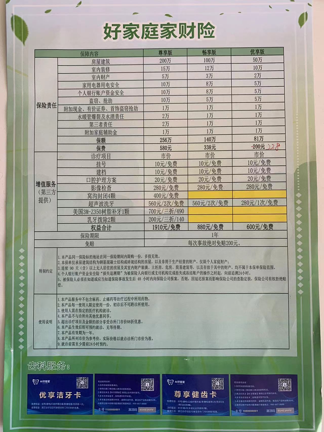 业务场景:国寿财与灵云保服合作,在国寿财的家财险产品中增加增值服务项(齿科服务)见右图。