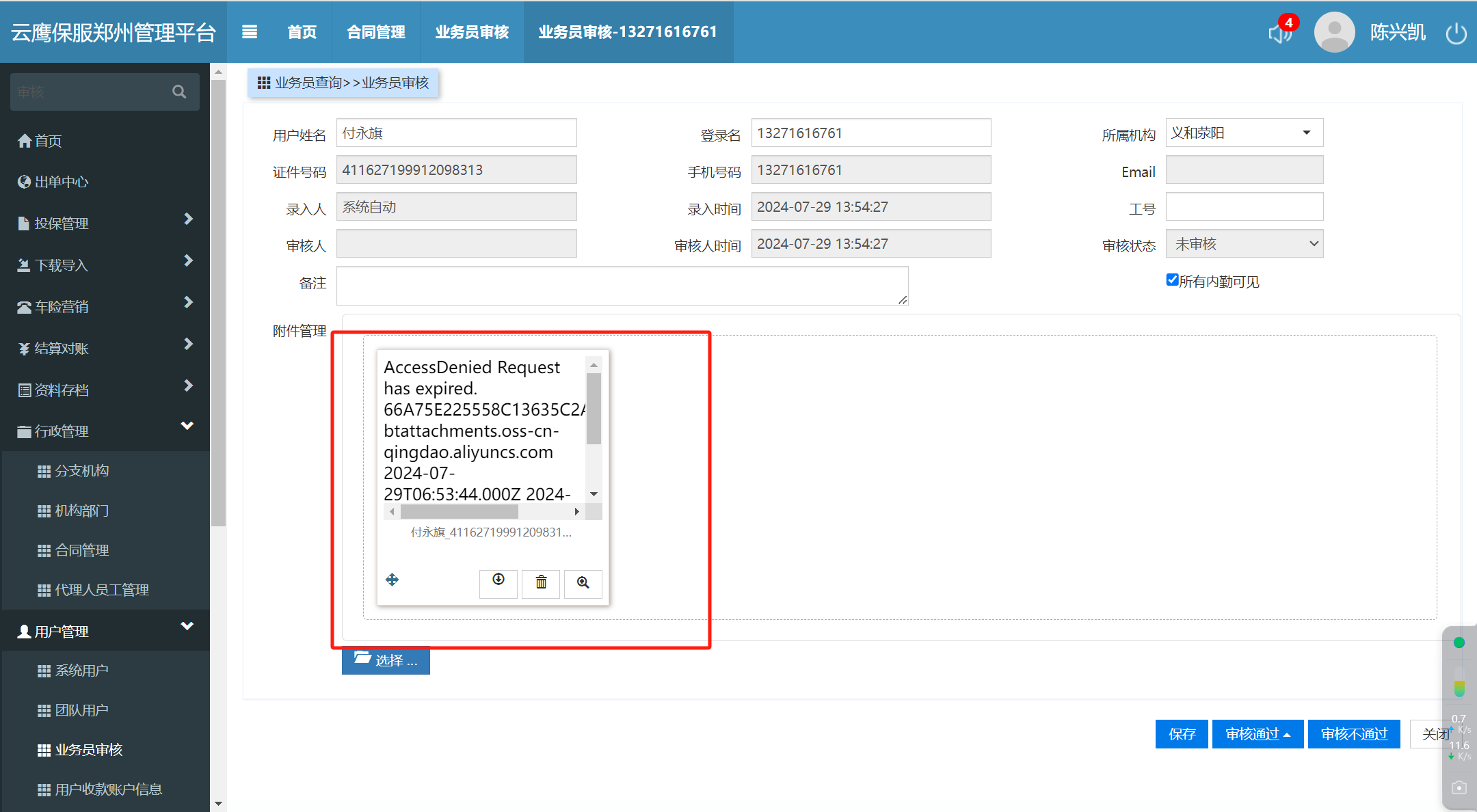 云鹰核心和郑州云鹰系统打开管理员审核查看电子协议时显示看不到电子协议