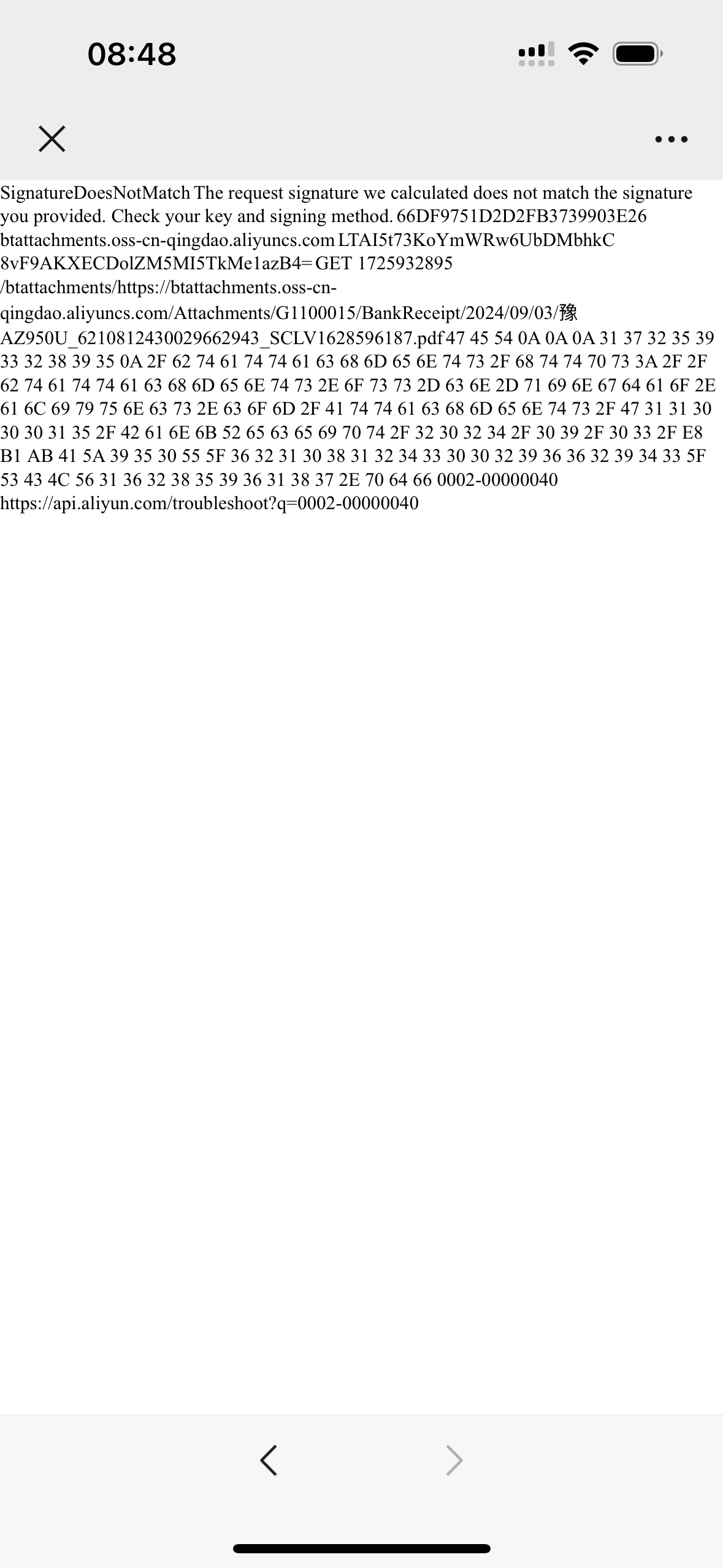 【云鹰保】业务中心-付款查询中已到账车辆回单查询显示乱码