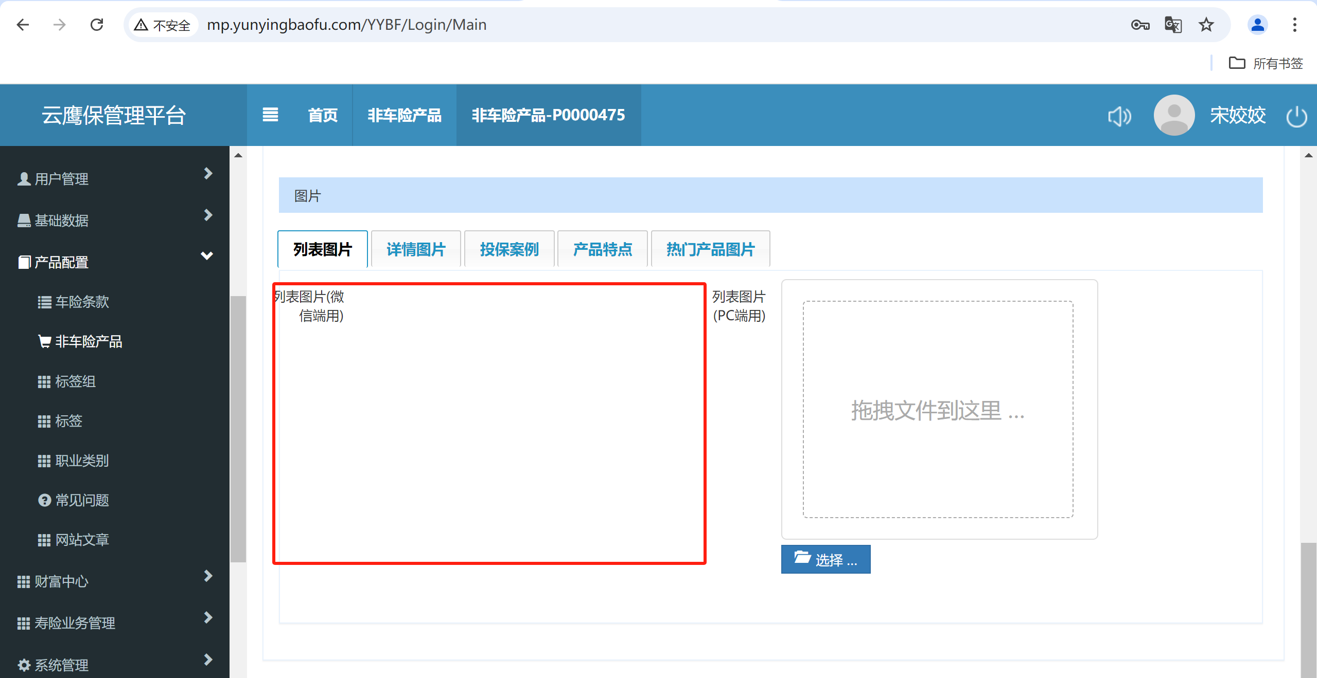 【云鹰核心】产品配置-非车险产品中列表图片没有上传入口
