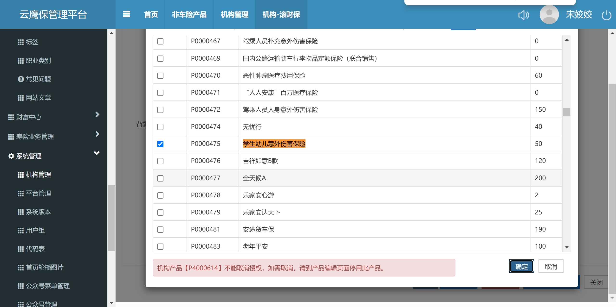 给机构下发任意一个产品,点击确定时提示“...不能取消授权”,详见附件