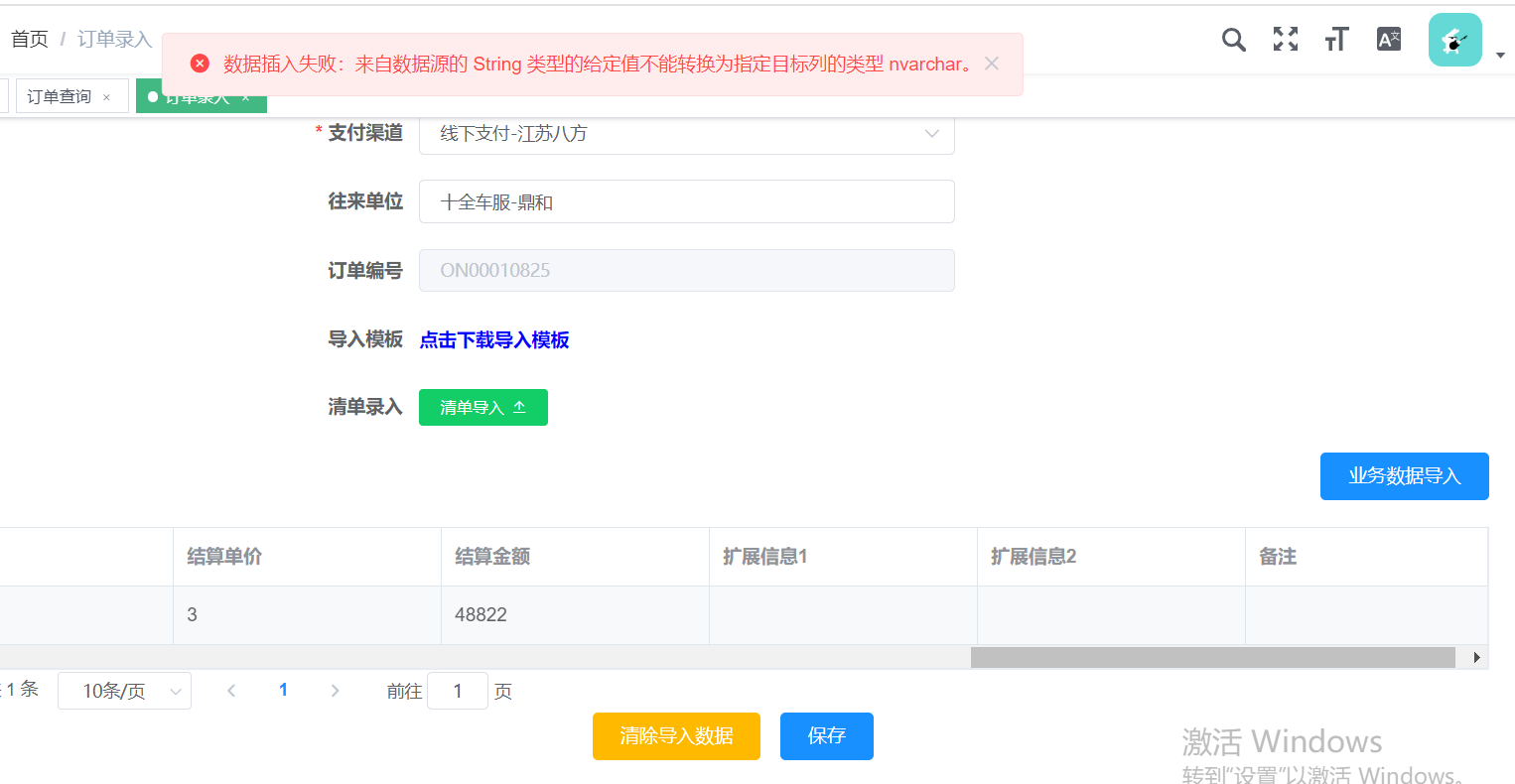 云鹰保生成推广点击量之后,进入订单系统关联云鹰保生成的广告后,提交时出现图中错误,要求可以正常提交订单系统