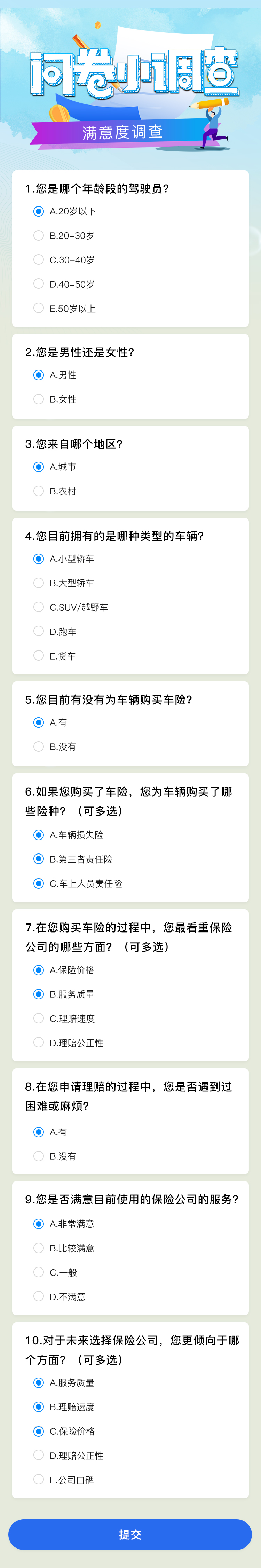 上线问卷调研功能,可以点击问卷调研模块,跳转界面,填完问卷提交后,显示 问卷提成功,洗车券已发送至您的帐户。(每人只能提交一次)