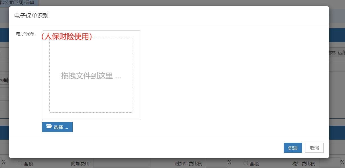 电子保单识别中合并单子保单导入中加入“人保保单识别”的字样,目的是不要让客户在此处识别别的品牌保单