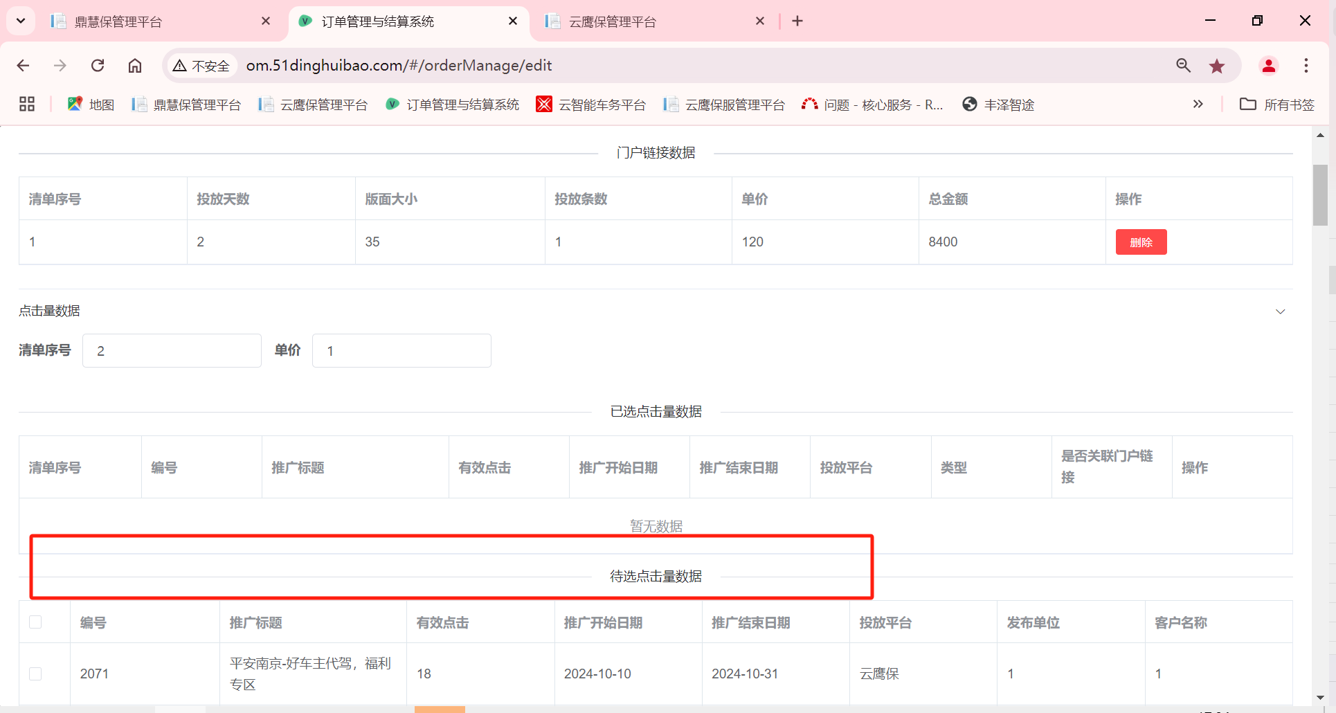 【订单管理与结算系统】开票时,推广服务-推广服务点击量增加搜索框功能,涉及到广告点击量数据太多,需要增加搜索框,进行搜索,便于查找勾选