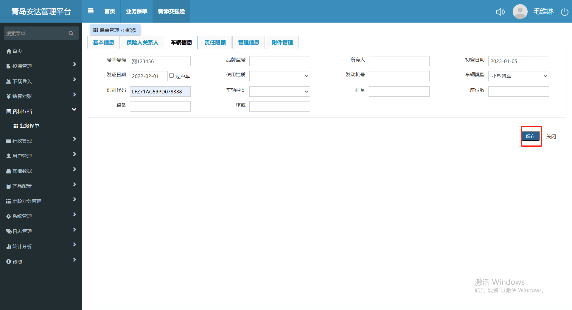 新添业务保单点击保存后没有反应,也没有任何提示,无法正常保存