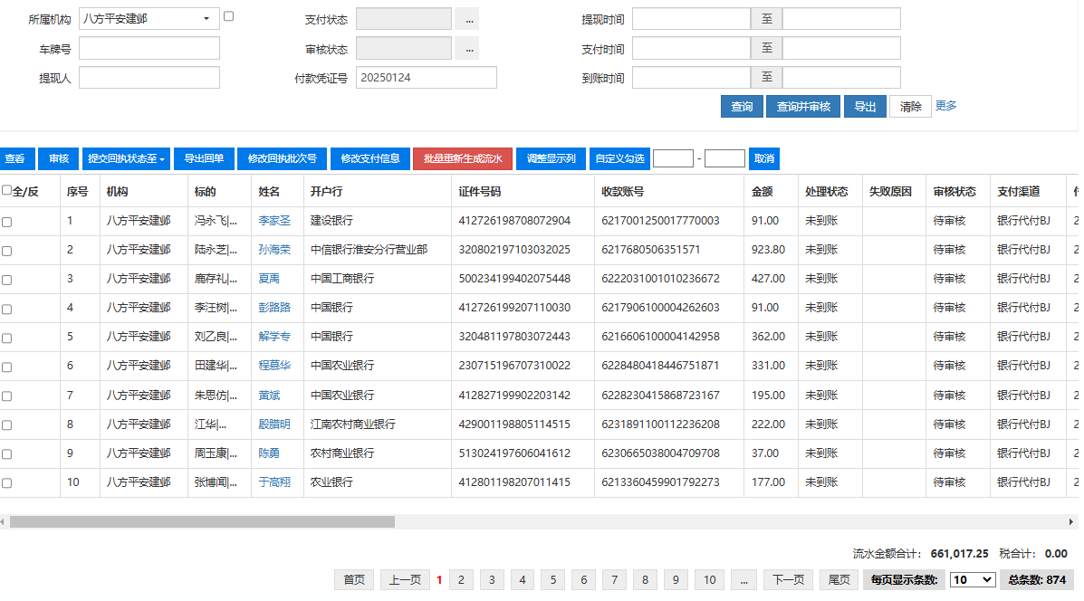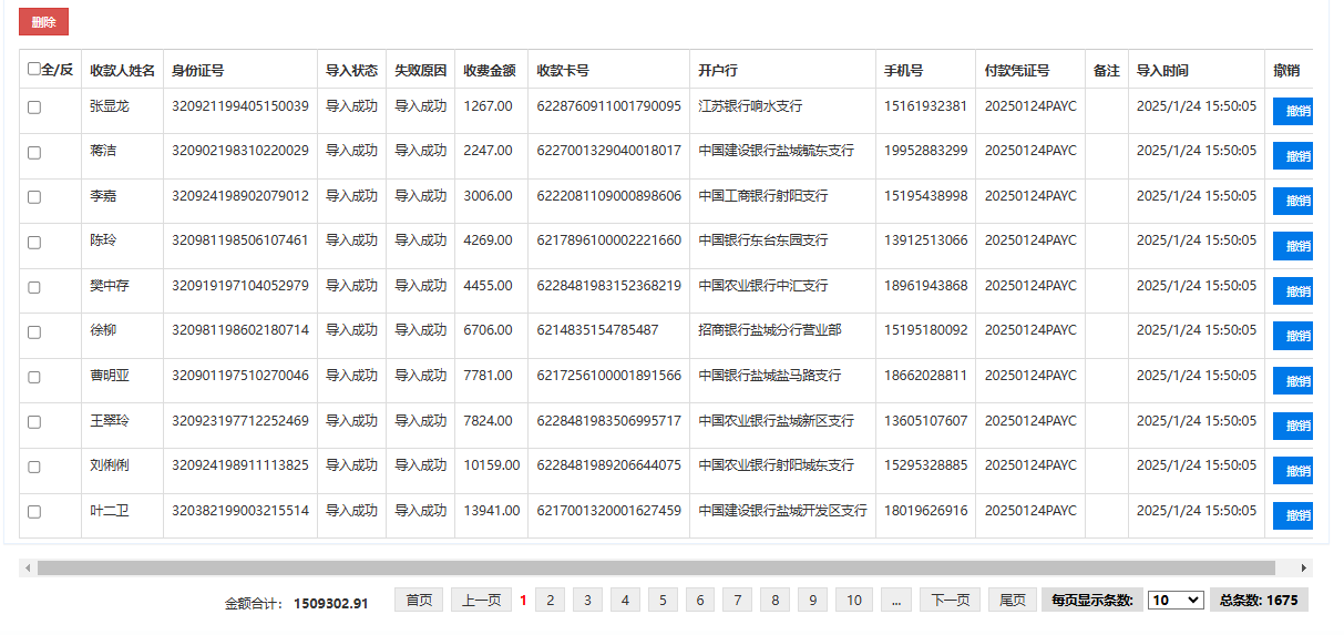 图1显示导入成功,图2流水只生成一半,图3按照凭证号能查到这些单子,总金额是对的