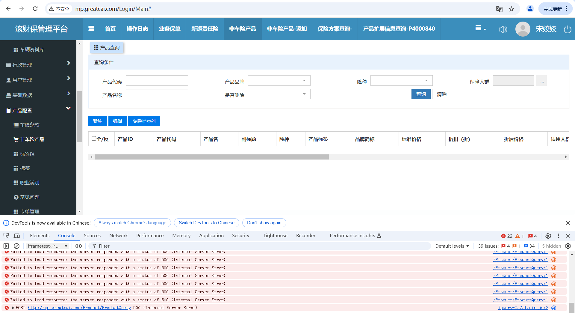 非车险产品查询时无法查询出产品,也无任何提示,需处理