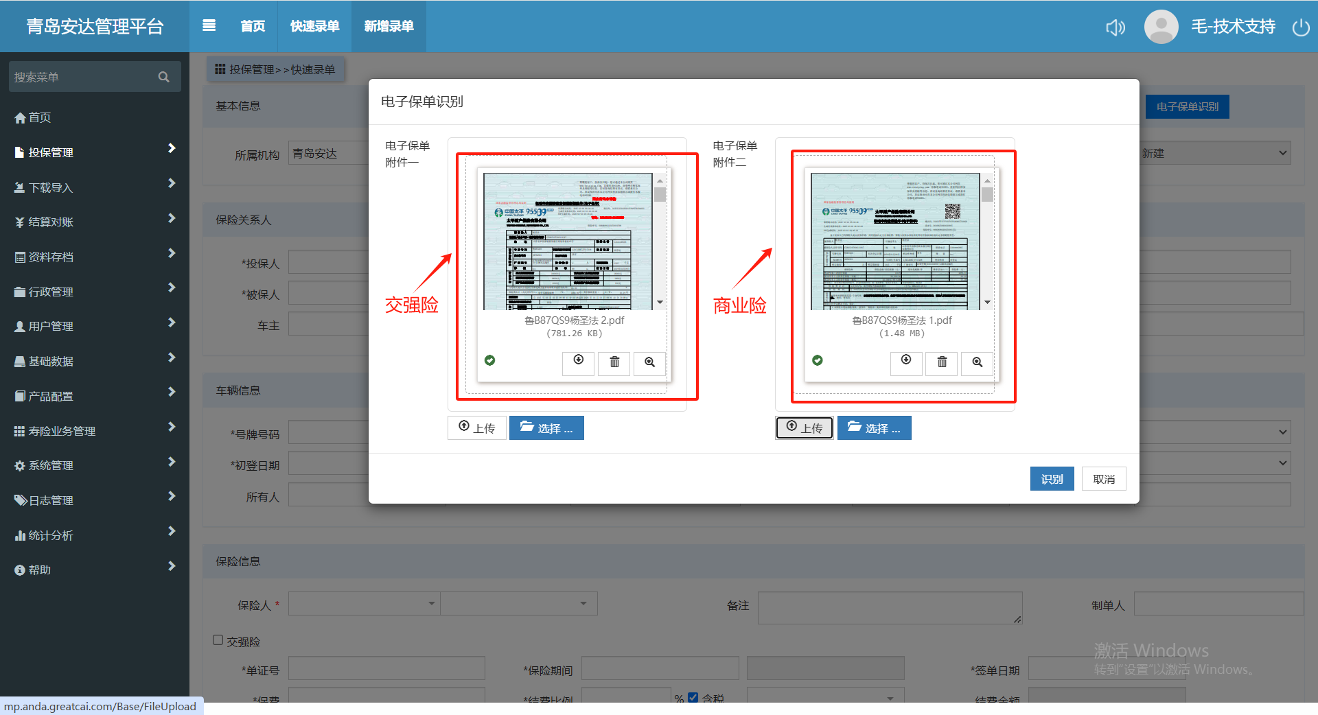 业务员老师电子保单识别是显示识别代码(车架号)识别错误,经过测试,附件一上传交强险,附件二上传商业险,识别代码出现错误,但附件一上传商业险,附件二上传交强险时,识别代码就会识别正确,需处理,无论附件处放的是交强还是商业险都需要识别正确。