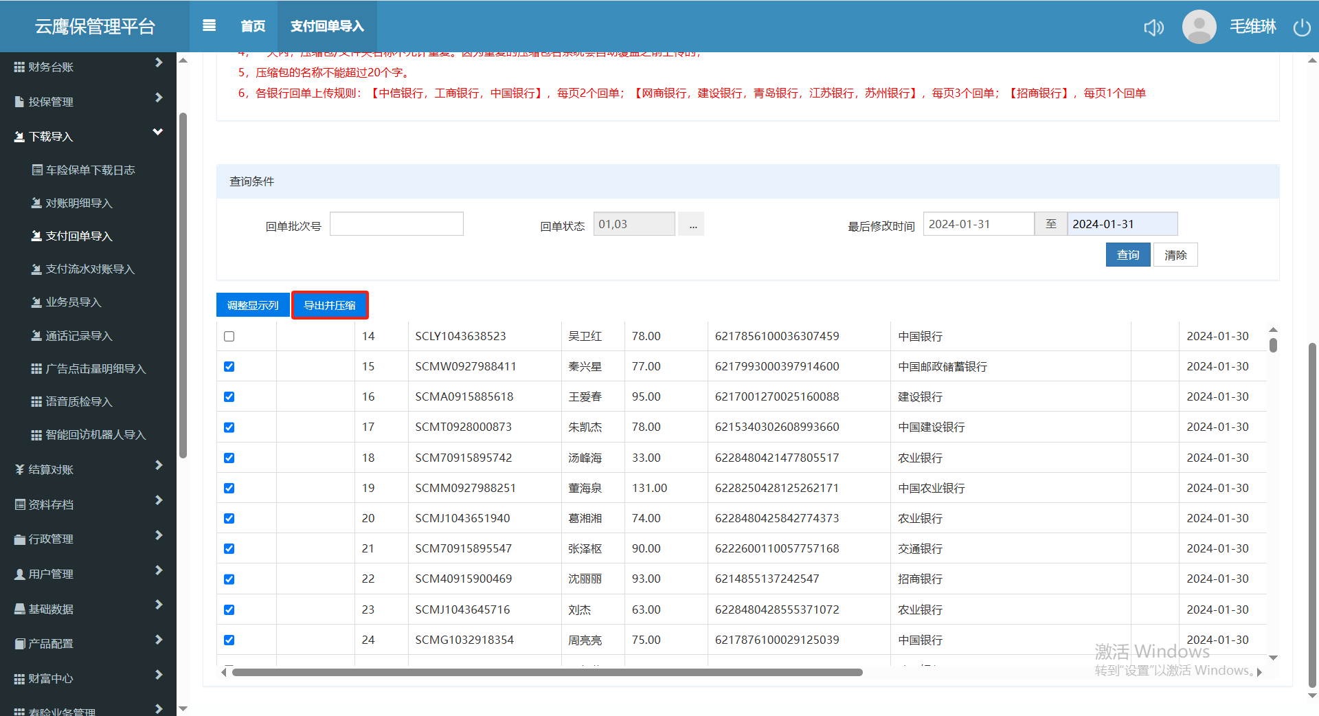 支付回单导入中点击导出并压缩按钮无反应,无法导出并压缩导出回单,需处理