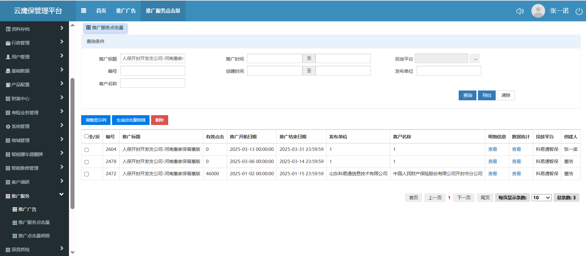 【云鹰保管理平台】推广服务同一条广告发布区间重叠,新增查询条件,完善投放平台
