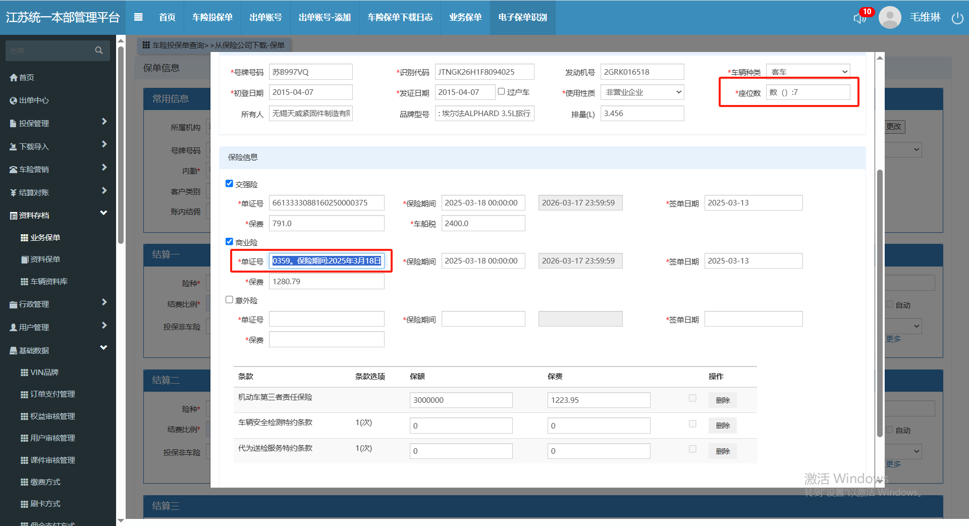 业务老师在申能财险电子保单识别导入时出现保单信息保存异常:BOIPMain:[PolicyNo:字段 PolicyNo 必须是最大长度为“30”的字符串或数组类型。]的异常提示后验证发现申能财险保单号识别过长导致的除此之外座位数识别也不准确 需一起处理