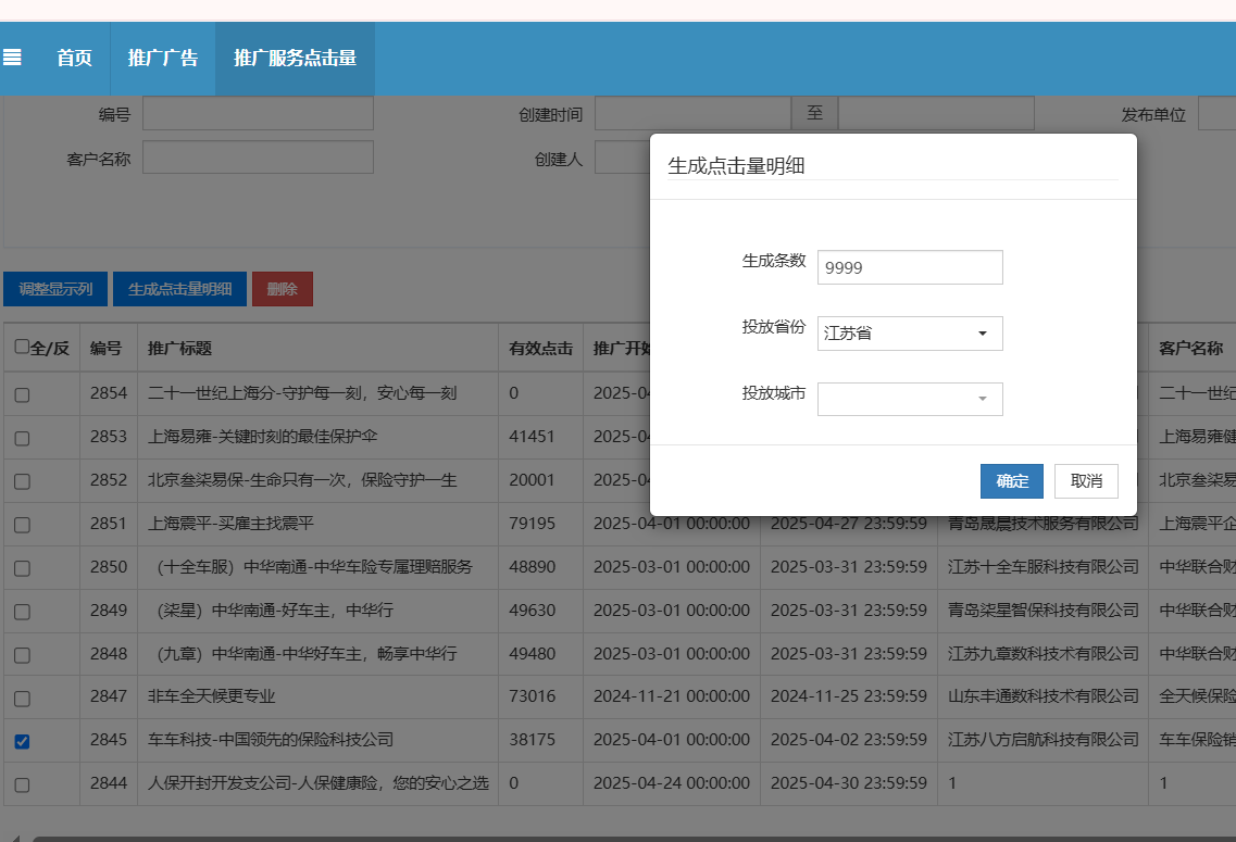 【云鹰保管理平台】推广服务-推广服务点击量生成时,可以指选择投放省份,不选择投放城市,生成全省内随机的ip